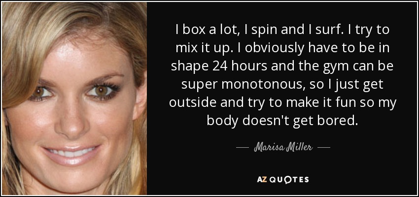 I box a lot, I spin and I surf. I try to mix it up. I obviously have to be in shape 24 hours and the gym can be super monotonous, so I just get outside and try to make it fun so my body doesn't get bored.