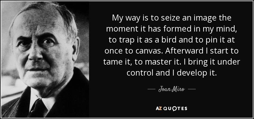 My way is to seize an image the moment it has formed in my mind, to trap it as a bird and to pin it at once to canvas. Afterward I start to tame it, to master it. I bring it under control and I develop it.