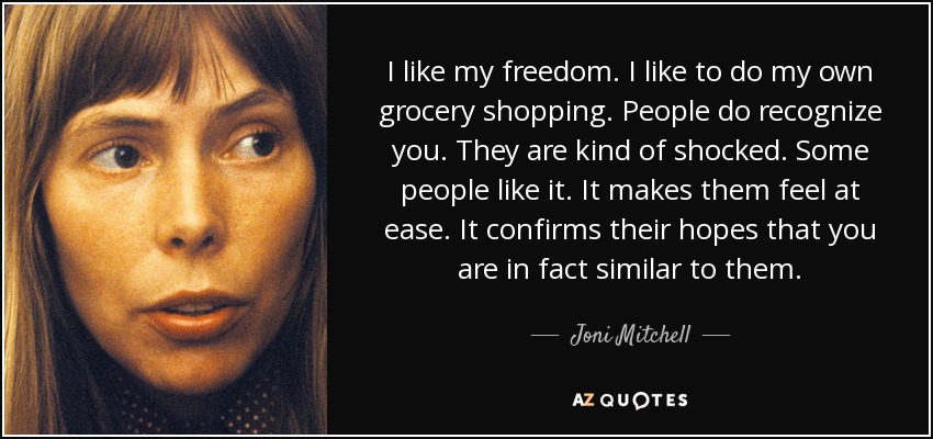"I like my freedom. I like to do my own grocery shopping. People do recognize you. They are kind of shocked. Some people like it. It makes them feel at ease. It confirms their hopes that you are in fact similar to them."