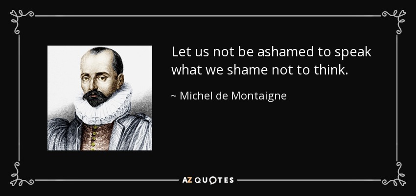 Michel de Montaigne, Marvin Lowenthal (1999). “The Autobiography of Michel de Montaigne: Comprising the Life of the Wisest Man of His Times : His Childhood, Youth, and Prime : His Adventures in Love and Marriage, at Court, and in Office, War, Revolution, and Plague : His Travels at Home and Abroad : His Habits, Tastes, Whims, and Opinions”, p.134, David R. Godine Publisher