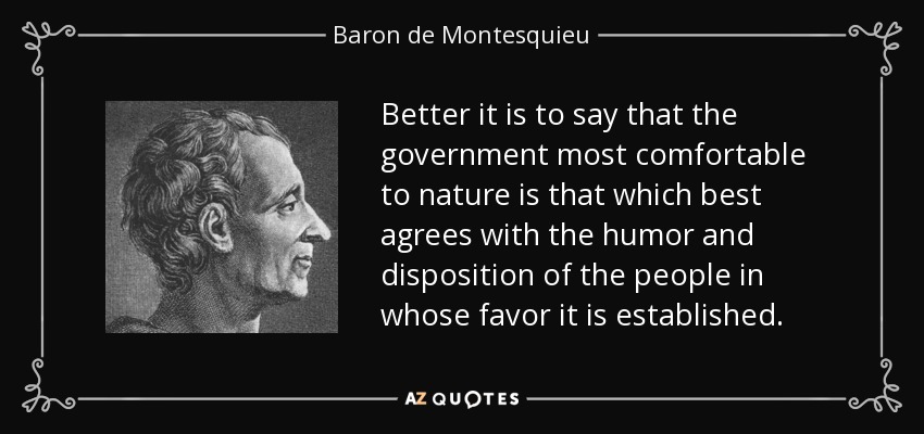 Better it is to say that the government most comfortable to nature is that which best agrees with the humor and disposition of the people in whose favor it is established.