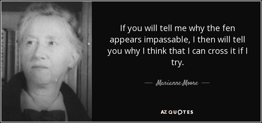 If you will tell me why the fen appears impassable, I then will tell you why I think that I can cross it if I try.