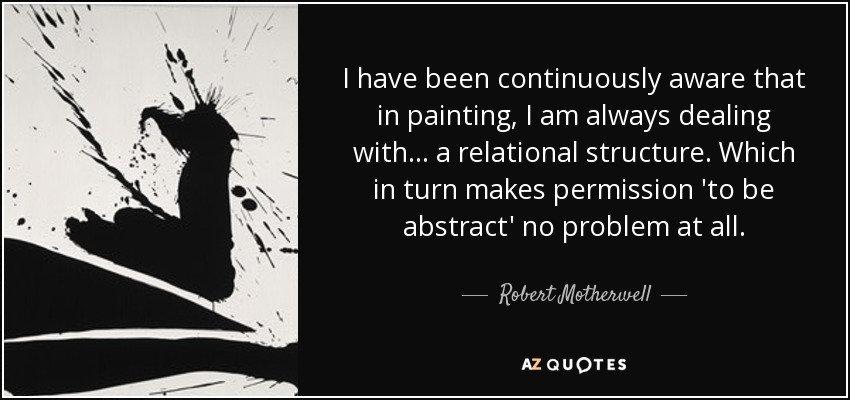 I have been continuously aware that in painting, I am always dealing with... a relational structure. Which in turn makes permission 'to be abstract' no problem at all.