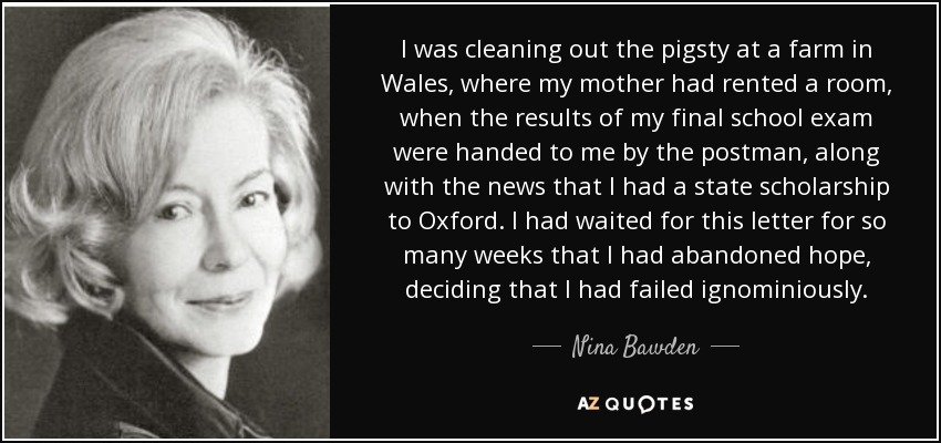 I was cleaning out the pigsty at a farm in Wales, where my mother had rented a room, when the results of my final school exam were handed to me by the postman, along with the news that I had a state scholarship to Oxford. I had waited for this letter for so many weeks that I had abandoned hope, deciding that I had failed ignominiously.
