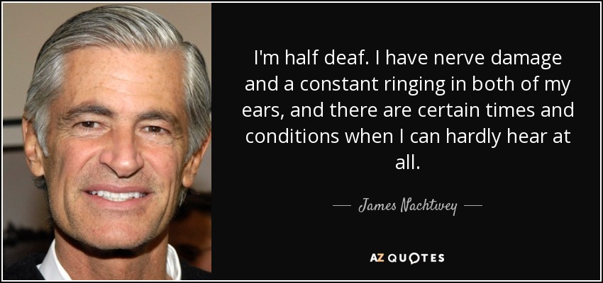 I'm half deaf. I have nerve damage and a constant ringing in both of my ears, and there are certain times and conditions when I can hardly hear at all.
