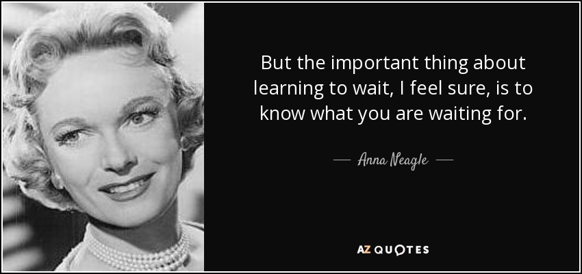 But the important thing about learning to wait, I feel sure, is to know what you are waiting for.