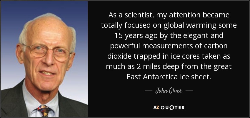 As a scientist, my attention became totally focused on global warming some 15 years ago by the elegant and powerful measurements of carbon dioxide trapped in ice cores taken as much as 2 miles deep from the great East Antarctica ice sheet.