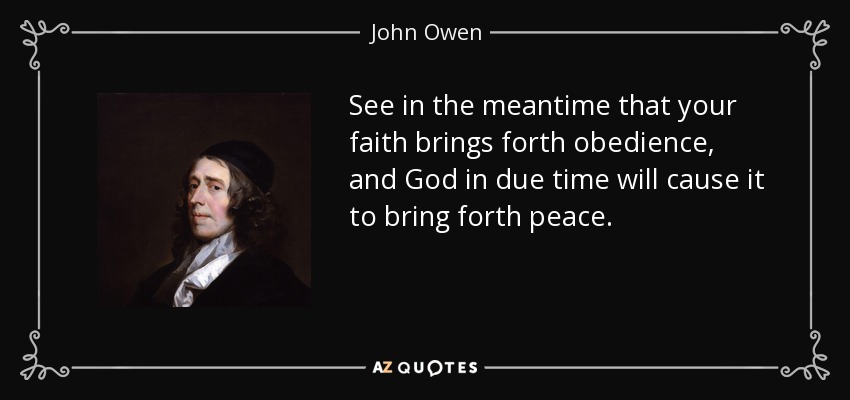 See in the meantime that your faith brings forth obedience, and God in due time will cause it to bring forth peace.