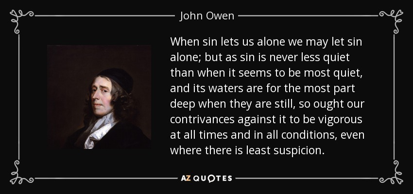 When sin lets us alone we may let sin alone; but as sin is never less quiet than when it seems to be most quiet, and its waters are for the most part deep when they are still, so ought our contrivances against it to be vigorous at all times and in all conditions, even where there is least suspicion.