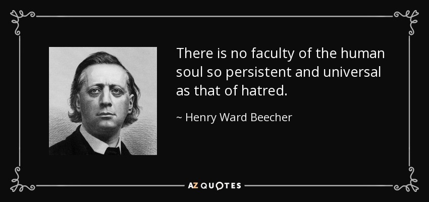 There is no faculty of the human soul so persistent and universal as that of hatred.