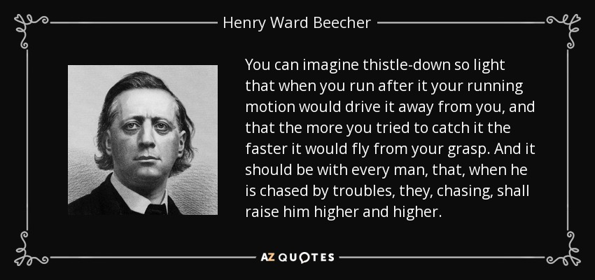 You can imagine thistle-down so light that when you run after it your running motion would drive it away from you, and that the more you tried to catch it the faster it would fly from your grasp. And it should be with every man, that, when he is chased by troubles, they, chasing, shall raise him higher and higher.