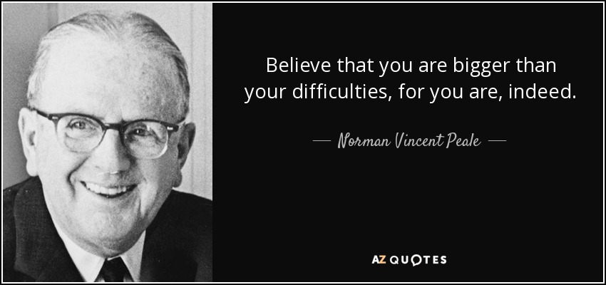 Believe that you are bigger than your difficulties, for you are, indeed.