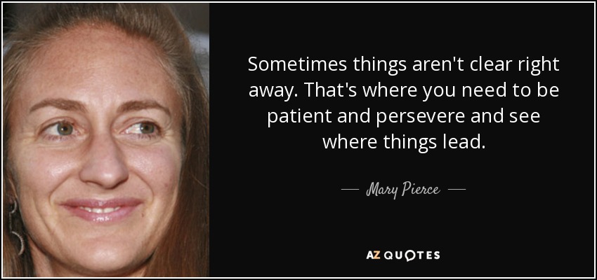 Sometimes things aren't clear right away. That's where you need to be patient and persevere and see where things lead.