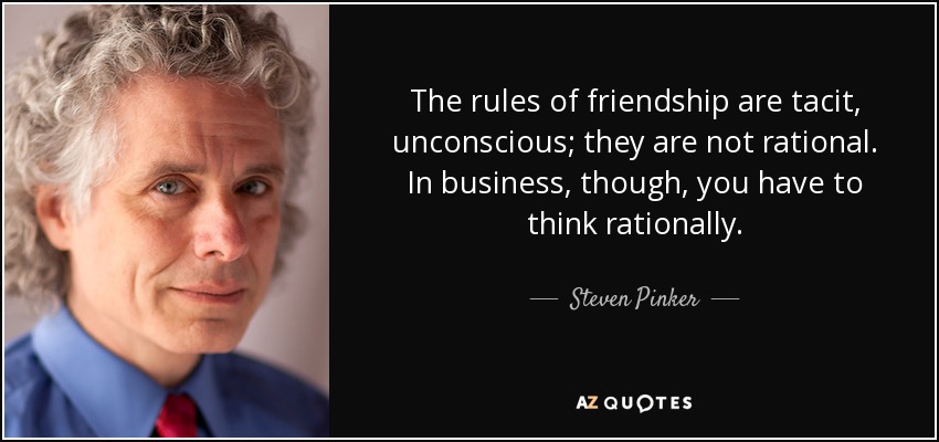 The rules of friendship are tacit, unconscious; they are not rational. In business, though, you have to think rationally.
