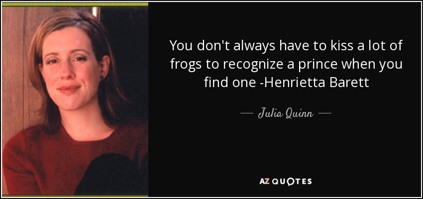 You don't always have to kiss a lot of frogs to recognize a prince when you find one -Henrietta Barett