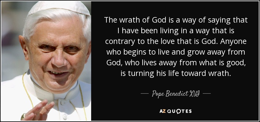 The wrath of God is a way of saying that I have been living in a way that is contrary to the love that is God. Anyone who begins to live and grow away from God, who lives away from what is good, is turning his life toward wrath.
