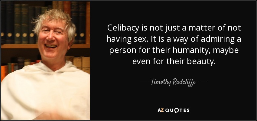 Celibacy is not just a matter of not having sex. It is a way of admiring a person for their humanity, maybe even for their beauty.