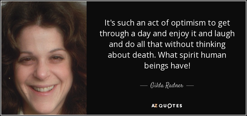 It's such an act of optimism to get through a day and enjoy it and laugh and do all that without thinking about death. What spirit human beings have!