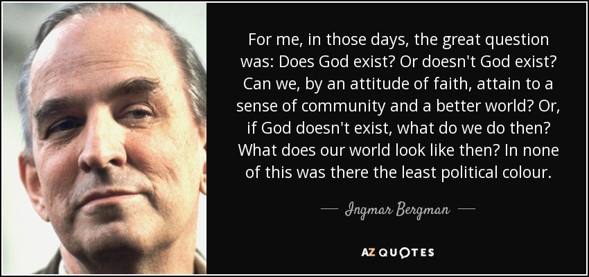 For me, in those days, the great question was: Does God exist? Or doesn't God exist? Can we, by an attitude of faith, attain to a sense of community and a better world? Or, if God doesn't exist, what do we do then? What does our world look like then? In none of this was there the least political colour.