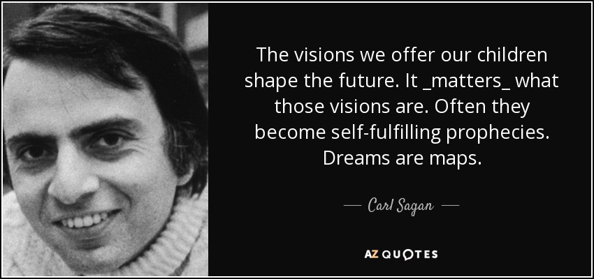 The visions we offer our children shape the future. It _matters_ what those visions are. Often they become self-fulfilling prophecies. Dreams are maps.