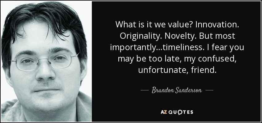 What is it we value? Innovation. Originality. Novelty. But most importantly...timeliness. I fear you may be too late, my confused, unfortunate, friend.