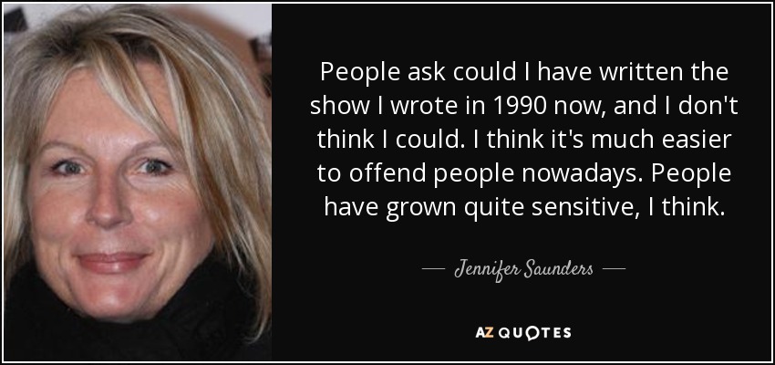 People ask could I have written the show I wrote in 1990 now, and I don't think I could. I think it's much easier to offend people nowadays. People have grown quite sensitive, I think.