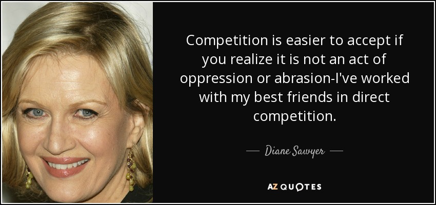 Competition is easier to accept if you realize it is not an act of oppression or abrasion-I've worked with my best friends in direct competition.