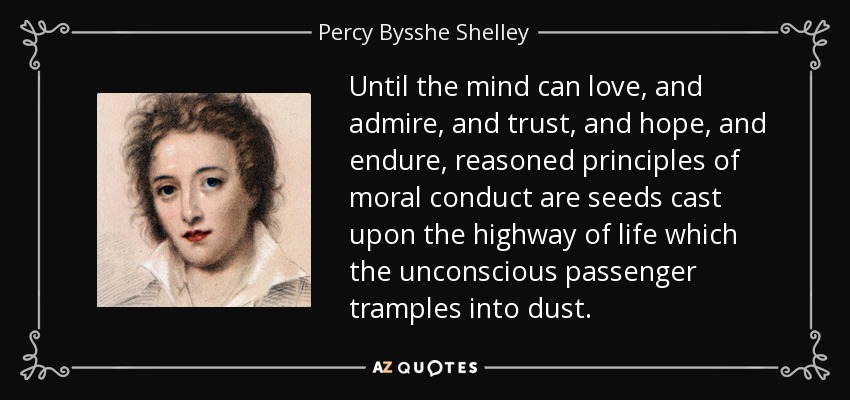 Until the mind can love, and admire, and trust, and hope, and endure, reasoned principles of moral conduct are seeds cast upon the highway of life which the unconscious passenger tramples into dust.