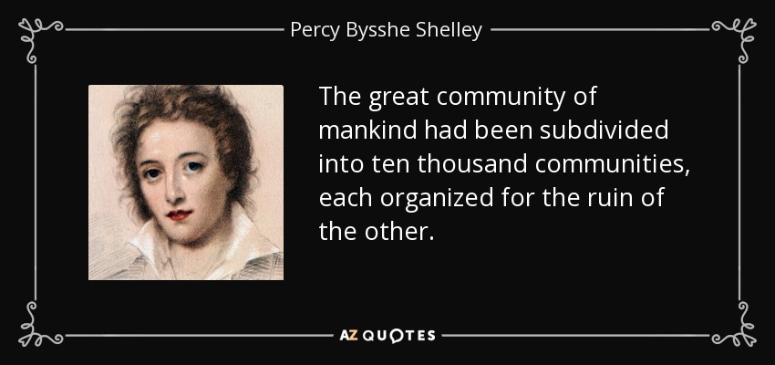 The great community of mankind had been subdivided into ten thousand communities, each organized for the ruin of the other.