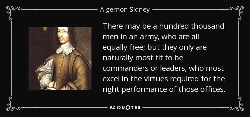 There may be a hundred thousand men in an army, who are all equally free; but they only are naturally most fit to be commanders or leaders, who most excel in the virtues required for the right performance of those offices.