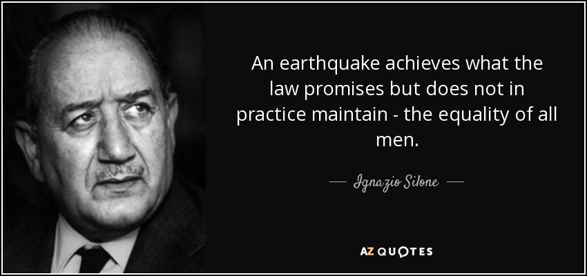 An earthquake achieves what the law promises but does not in practice maintain - the equality of all men.