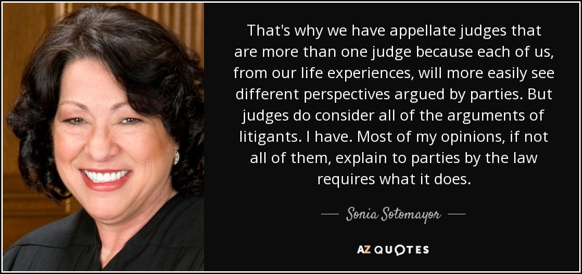 That's why we have appellate judges that are more than one judge because each of us, from our life experiences, will more easily see different perspectives argued by parties. But judges do consider all of the arguments of litigants. I have. Most of my opinions, if not all of them, explain to parties by the law requires what it does.