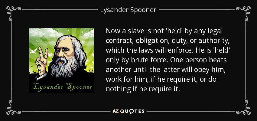 Lysander Spooner (1886). “A Letter to Grover Cleveland on His False Inaugural Address, the Usurpation and Crimes of Lawmakers and Judges, and Consequent Poverty, Ignorance, and Servitude of the People”