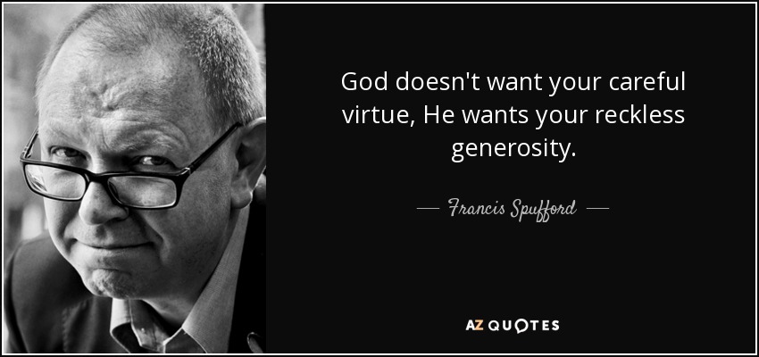 God doesn't want your careful virtue, He wants your reckless generosity.