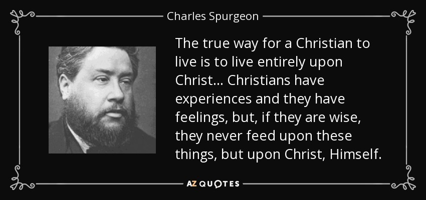 The true way for a Christian to live is to live entirely upon Christ... Christians have experiences and they have feelings, but, if they are wise, they never feed upon these things, but upon Christ, Himself.