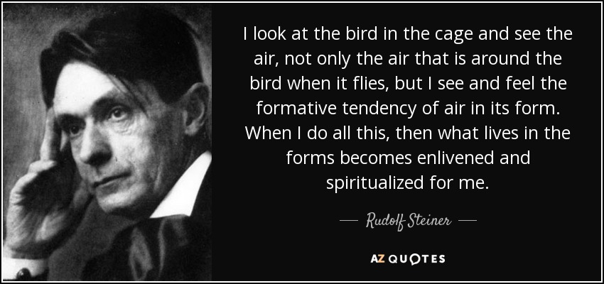 I look at the bird in the cage and see the air, not only the air that is around the bird when it flies, but I see and feel the formative tendency of air in its form. When I do all this, then what lives in the forms becomes enlivened and spiritualized for me.