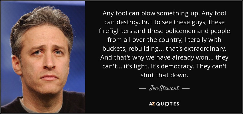 Any fool can blow something up. Any fool can destroy. But to see these guys, these firefighters and these policemen and people from all over the country, literally with buckets, rebuilding... that's extraordinary. And that's why we have already won... they can't... it's light. It's democracy. They can't shut that down.