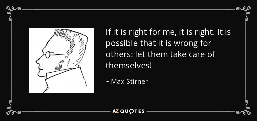 If it is right for me, it is right. It is possible that it is wrong for others: let them take care of themselves!