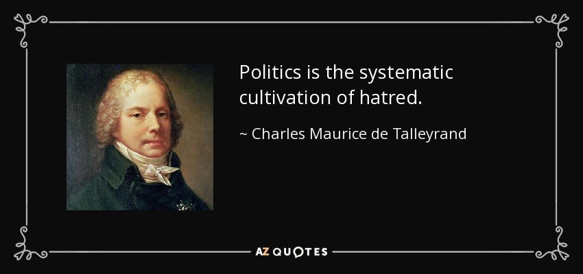 Politics is the systematic cultivation of hatred.