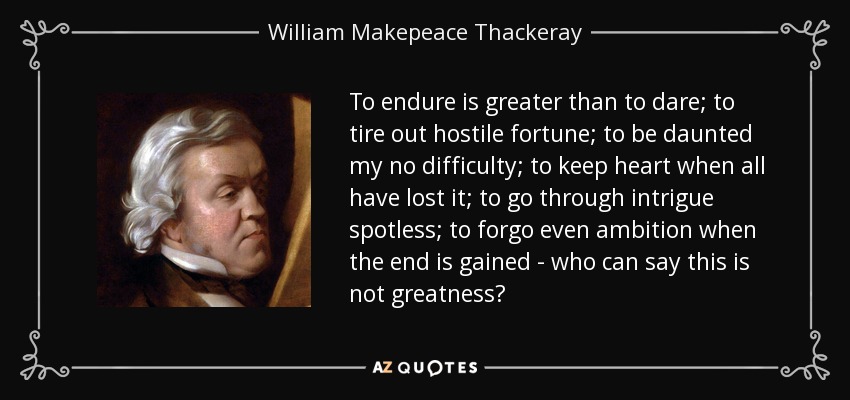 To endure is greater than to dare; to tire out hostile fortune; to be daunted my no difficulty; to keep heart when all have lost it; to go through intrigue spotless; to forgo even ambition when the end is gained - who can say this is not greatness?