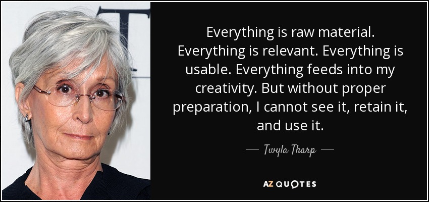 Everything is raw material. Everything is relevant. Everything is usable. Everything feeds into my creativity. But without proper preparation, I cannot see it, retain it, and use it.