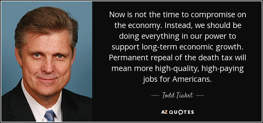 Now is not the time to compromise on the economy. Instead, we should be doing everything in our power to support long-term economic growth. Permanent repeal of the death tax will mean more high-quality, high-paying jobs for Americans.
