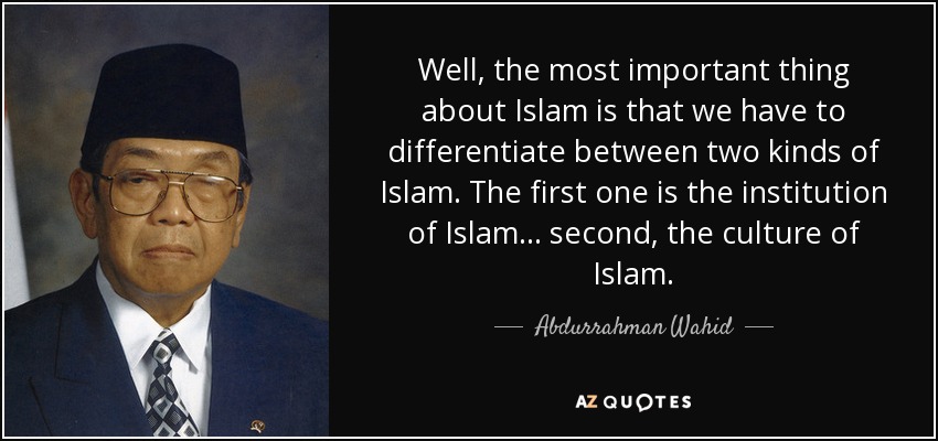 Well, the most important thing about Islam is that we have to differentiate between two kinds of Islam. The first one is the institution of Islam... second, the culture of Islam.