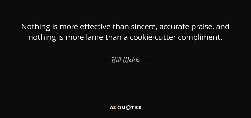 Nothing is more effective than sincere, accurate praise, and nothing is more lame than a cookie-cutter compliment.