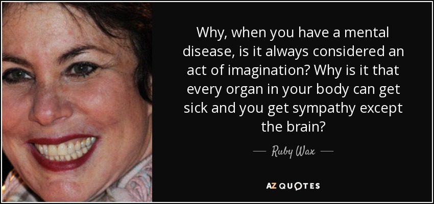 Why, when you have a mental disease, is it always considered an act of imagination? Why is it that every organ in your body can get sick and you get sympathy except the brain?