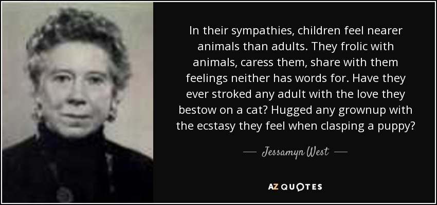 In their sympathies, children feel nearer animals than adults. They frolic with animals, caress them, share with them feelings neither has words for. Have they ever stroked any adult with the love they bestow on a cat? Hugged any grownup with the ecstasy they feel when clasping a puppy?