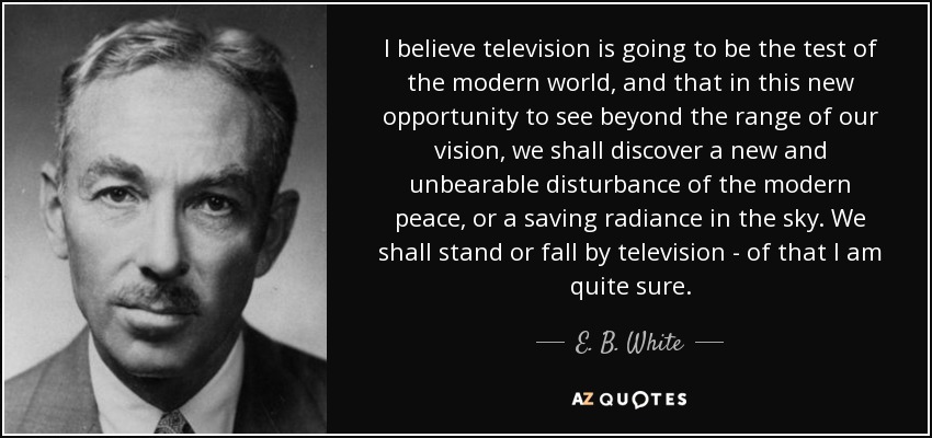 I believe television is going to be the test of the modern world, and that in this new opportunity to see beyond the range of our vision, we shall discover a new and unbearable disturbance of the modern peace, or a saving radiance in the sky. We shall stand or fall by television - of that I am quite sure.