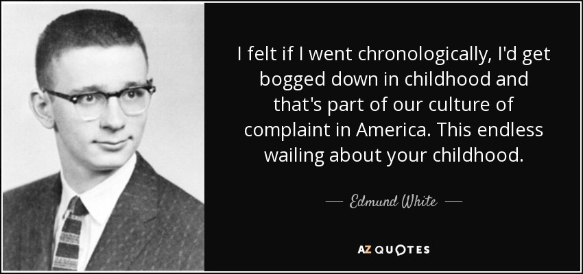 I felt if I went chronologically, I'd get bogged down in childhood and that's part of our culture of complaint in America. This endless wailing about your childhood.