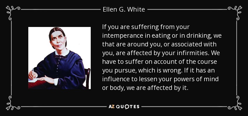 If you are suffering from your intemperance in eating or in drinking, we that are around you, or associated with you, are affected by your infirmities. We have to suffer on account of the course you pursue, which is wrong. If it has an influence to lessen your powers of mind or body, we are affected by it.