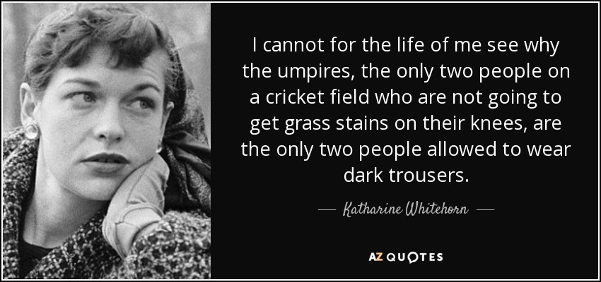 I cannot for the life of me see why the umpires, the only two people on a cricket field who are not going to get grass stains on their knees, are the only two people allowed to wear dark trousers.